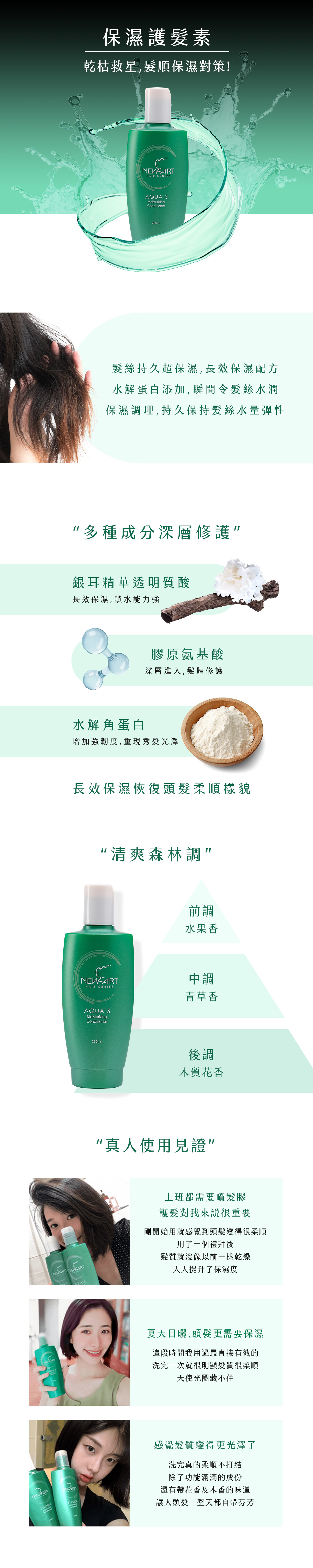 ◆ 水解角元蛋白及膠原蛋白具雙效保濕及護髮功能。有效地進入髮體深層瞬間修護,讓秀髮柔順如絲具光滑觸感。